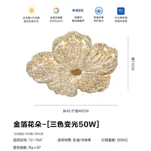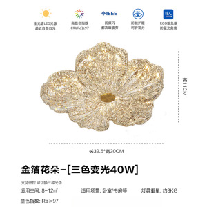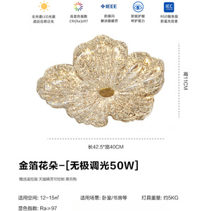 2025 新金箔ライト高級クリエイティブフラワーランプハイエンド樹脂マスターベッドルームランプ目の保護寝室銅天井ランプ