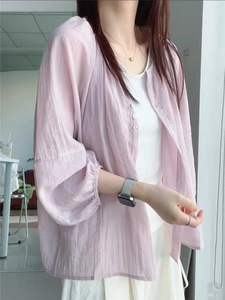 リネン日焼け止めシャツジャケット女性の薄い夏カーディガンアウタールーズ長袖シャツショートトップ