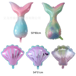 クロスボーダー新しいカラフルなフィッシュテールマーメイドシェル漫画スタイルアルミフィルムバルーン誕生日パーティーの装飾アルミ箔
