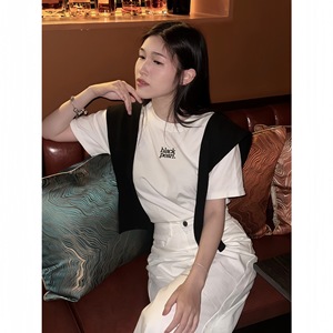 字母刺绣短袖T恤女2025夏季新款修身女式圆领学生女装上衣服女潮