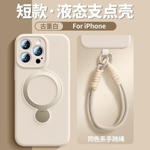 iPhone16用液体回転式スタンドケース、ストラップ付き、Apple 17PROMAX対応、磁気吸着、落下防止