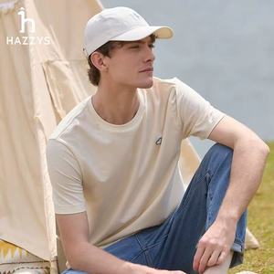 クロスボーダー Hazzys ハギス メンズ トップス 半袖 ラウンドネック Tシャツ 無地 刺繍 カジュアル