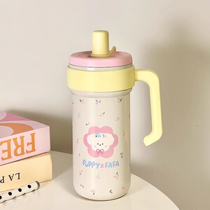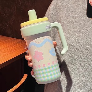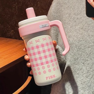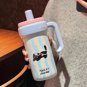 カップクラスメイト魔法瓶カップ女の子高見えステンレスライナーストローアイスカップ大容量男女学生ケトル