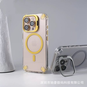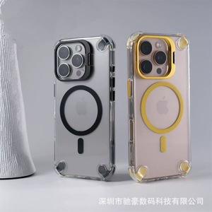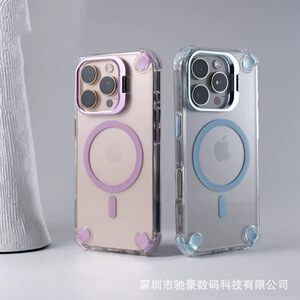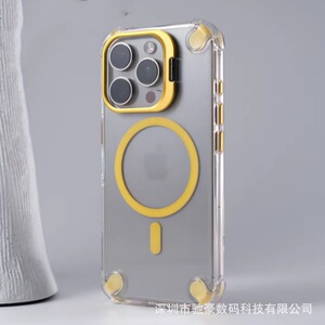 iPhone17に適した透明磁気電話ケース、Apple 16四隅エアバッグ、落下防止15レンズブラケットPCケース14