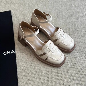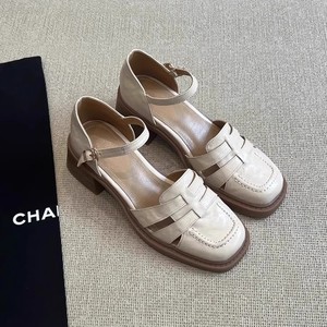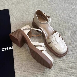 スーパーソフトラムスキン〜ホワイトトゥサンダル女性用2025年夏新作本革ローマン太ヒールハイヒールフレンチシューズ