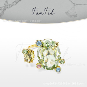 カラフルクリスタルグリーンオープンリング