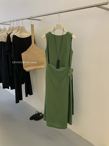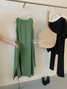 Y.JIA イージャ気質リネンラップワンピースストラップウエスト万能着痩せワンピースAラインスカート1031