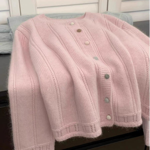 法式粉色小香风针织开衫女2025早春内搭冬季毛衣外套打底上衣女装