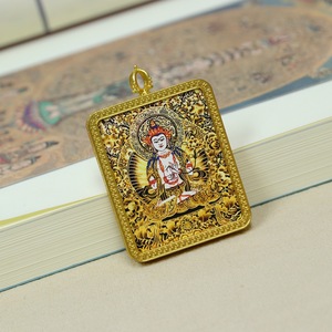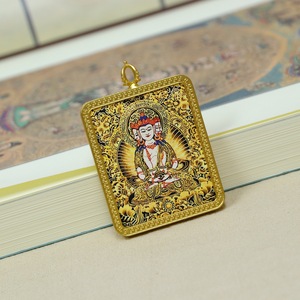 手描きの金張りチベット風五台山五八守護タンカ卸売ペンダントペンダントポータブル仏陀