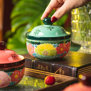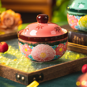 グリーンシャドウパウダーシチューポット、家庭用陶器スープシチューポット、蓋付きセラミックシチューポット、一人用蒸し卵カップ、ツバメの巣ボウル