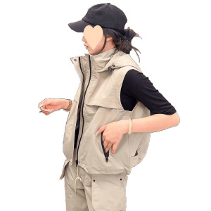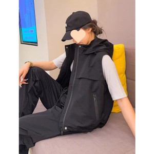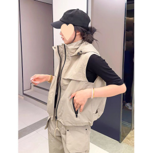 欧货带帽马甲女款2025春秋新款连帽休闲工装女士卫衣马夹背心坎肩