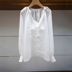 Moshu Weiya 2025 新しい夏の長袖 V ネックルーズランタンスリーブ多用途シャツトップ 5903B