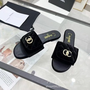 Xiaoxiangfeng シープスキン菱形サンダル女性のための 2025 春夏新作フラットシューズローヒールスクールバッグバックルアウターウェアスリッパ