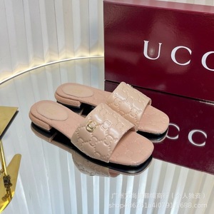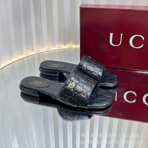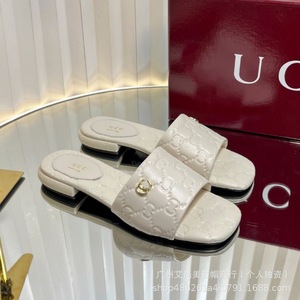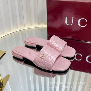 G's 外国貿易 2025 夏の新スタイルエンボスレターフラット本革クラシックビーチ休暇多用途スリッパ