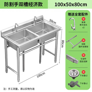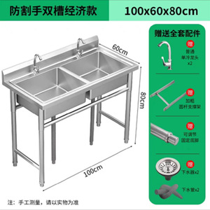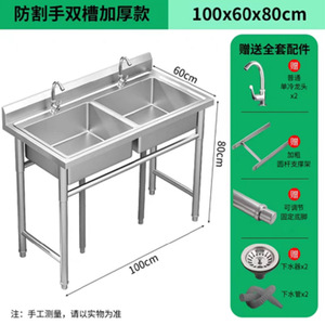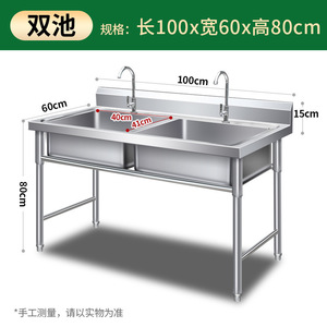全体 304 業務用 (中厚) ステンレス鋼 - ダブルプール長さ 100*幅 60*高さ 80