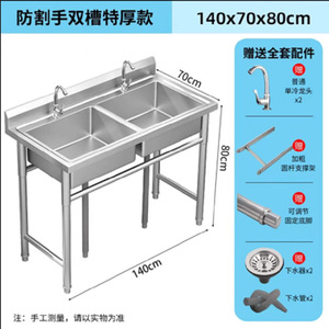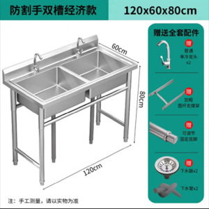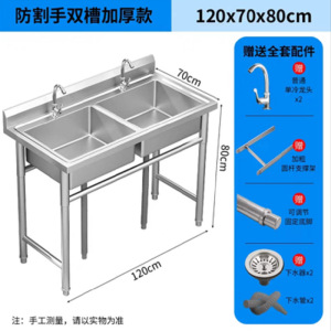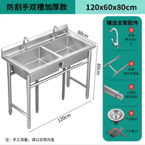 全体 304 業務用 (中厚) ステンレス鋼 - ダブルプール長さ 120*幅 60*高さ 80