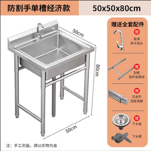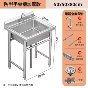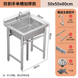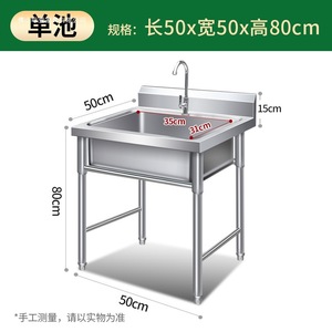 全体 304 業務用 (中厚) ステンレス鋼 - シングルプール長さ 50*幅 50*高さ 80