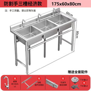 全体 304 普通 (薄) ステンレス鋼 - 3 プール長さ 175*幅 60*高さ 80