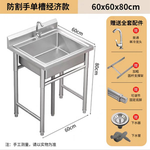 全体 304 業務用 (中厚) ステンレス鋼 - シングルプール長さ 80*幅 60*高さ 80