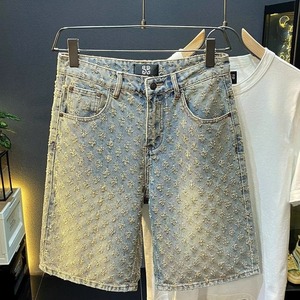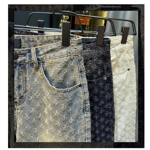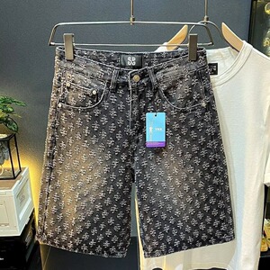 2025 アメリカの新しいデニムショートパンツメンズ夏ルーズストレートカジュアルジャカードハイエンドミッドパンツ