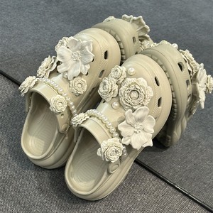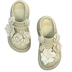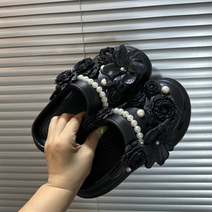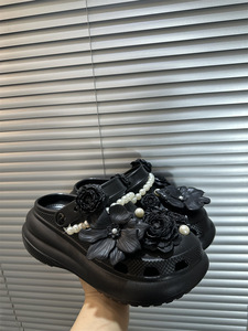 フラワー 6cm 厚底下駄スリッパ女性用 2025 年夏新入生夏のお出かけサンダル