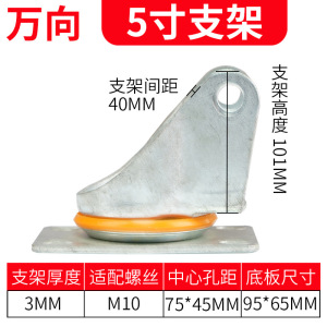米想万向轮轮子支架底板配件工业4寸万向5寸定向刹车重型底板支架