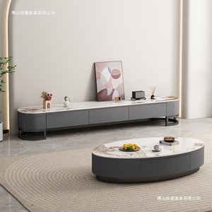楕円形のミニマリストのロックボードコーヒーテーブルリビングルームホーム小さなアパートモダンライト高級シンプルなティーテーブルテレビキャビネットの組み合わせ