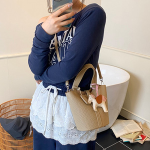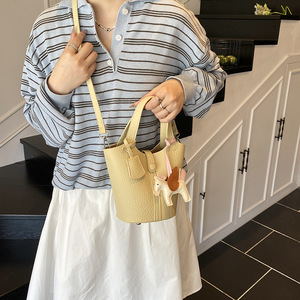 荔枝纹手拎包包女大容量2025新款夏季简约百搭单肩斜挎休闲水桶包