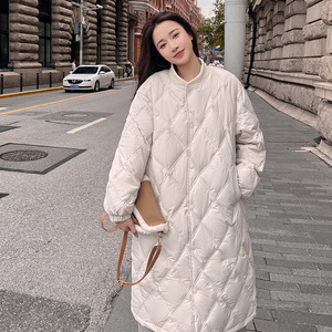 菱形チェックダウンコットンジャケット女性のための 2025 新しい冬の人気のロング厚い綿コート暖かい綿ジャケット女性のための