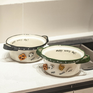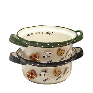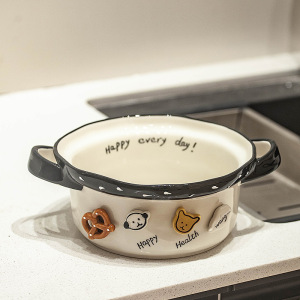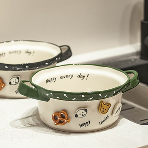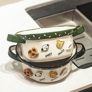クリエイティブでキュートなパーソナライズされた高価値の両耳セラミックスープボウルインスタントラーメンボウルサラダボウルフルーツボウル家庭用ヨーグルトボウル