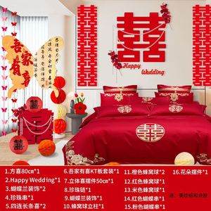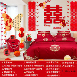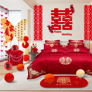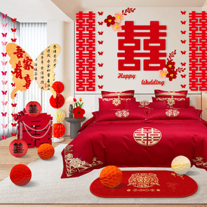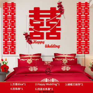 2025结婚婚房布置装饰拉花男方女方床头卧室背景墙新婚房间高级感