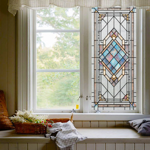 国境を越えた新しいシンプルなカラフルなラインパターンウィンドウストア透光性可動静電PVC透明ガラスステッカー
