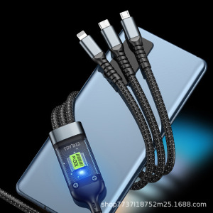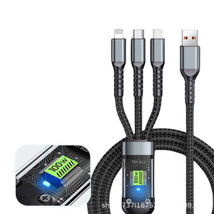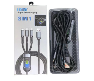 3-in-1 データケーブル 100W ブラック携帯電話充電ケーブル 1.2m 4FT 3in1 USB 電話ケーブル