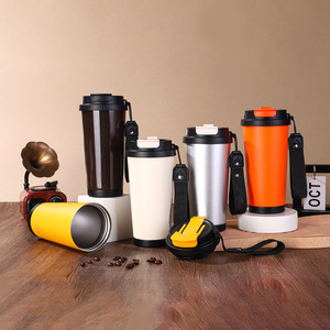 国境を越えた 316L ステンレス鋼のコーヒーカップ、持ち運び可能なロープ付きの見栄えの良い二重層真空断熱カップ、ポータブルダブルドリンクカップ卸売