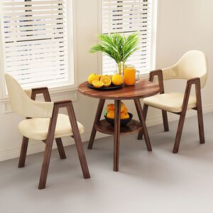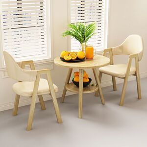【木目脚・テーブル1脚・チェア2脚】ホワイトレザーAライン