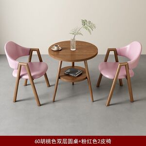 【ウォールナット柄テーブル&チェア2脚】ピンクレザーAライン