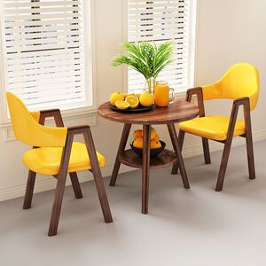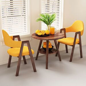 【ウォールナット柄テーブル&チェア2脚】イエロー生地Aライン