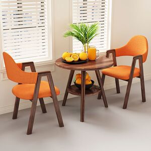 【ウォールナット柄テーブル&チェア2脚】オレンジ生地Aライン