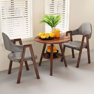 【木目脚・テーブル1脚・チェア2脚】ダークグレーレザーAライン
