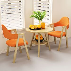【木目脚・テーブル1脚・チェア2脚】オレンジ生地A型