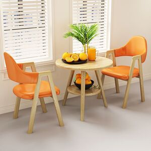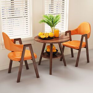 【木目脚・テーブル1脚・チェア2脚】オレンジレザーAライン