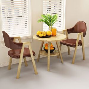 【木目脚・テーブル1脚・チェア2脚】ブラウンレザーAライン