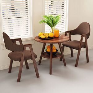 【ウォールナット柄テーブル&チェア2脚】ブラウン生地 Aライン