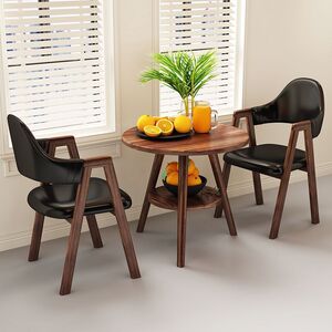 【ウォールナット柄テーブル&チェア2脚】ブラックレザーAライン
