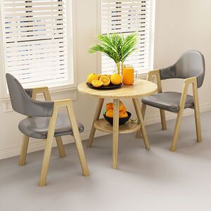【木目脚・テーブル1脚・チェア2脚】ライトグレーレザーAライン