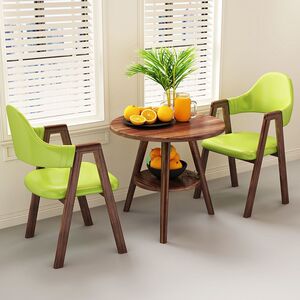 【ウォールナット柄テーブル&チェア2脚】フルーツグリーンレザー Aライン