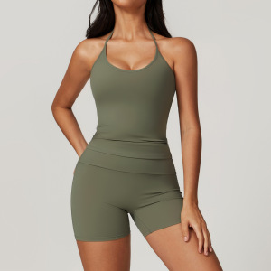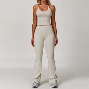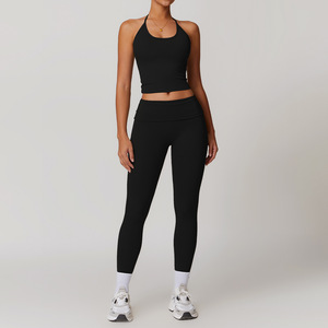 Ganxiu ホルターネック タイト ビューティーバック ヨガスーツ 速乾 折りたたみ ハイウエスト カジュアル 万能 フィットネス スポーツスーツ 8791