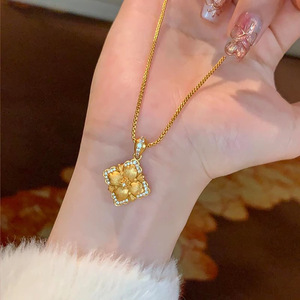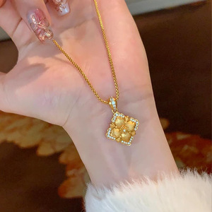 ブッチ風イタリアンブラッシュ四つ葉のクローバーネックレス、ヘビーデューティーマイクロセット、軽い高級感、多用途、高価値鎖骨チェーンネックレス