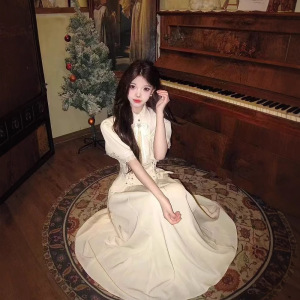 夏の美しさと優しさ、韓国風の気質、シンプルでエレガントなロングスカート、女性向けの高級スリムホワイトケープドレス