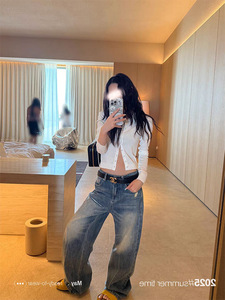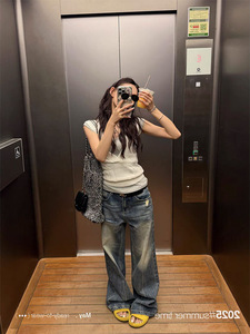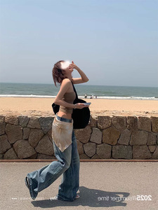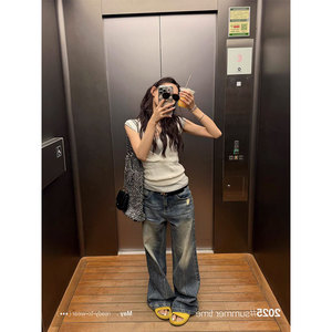 SUNONEONE ルーズリップドワイドレッグジーンズ女性のための夏 2025 新しいアメリカンレトロストレートカジュアルパンツ
